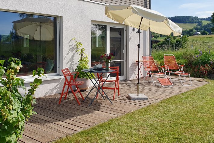 Wunderbar ästhetisch eingerichtete, lichtdurchflutete Wohnung mit herrlicher Sonnenterrasse, schöner Aussicht, fußläufig gelegener guter Nahversorgung (toller Bäcker!) und traumhaftem Wandergelände direkt vor der Tür. Absolut empfehlenswert!